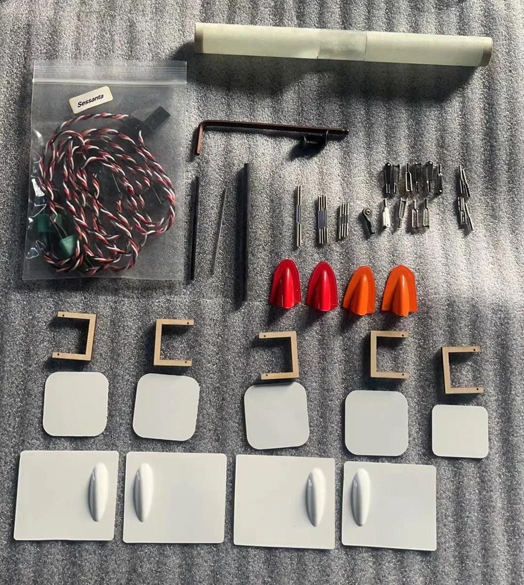 Note the extensive hardware package included in every Aeroic kit. The Corsa kit includes: Fuselage ballast tube, pre-wired servo harness that matches molded in fuse and wing pockets, elevator and rudder servo extensions, linkage set including elevator ball link, aileron and flap pushrods with quality metal clevis’, servo frames, color matched control horn covers, both hollow and solid carbon tail spars, color matched flat and bump wing servo covers & tail closeout cover, wing bolts and matching allen wrench.